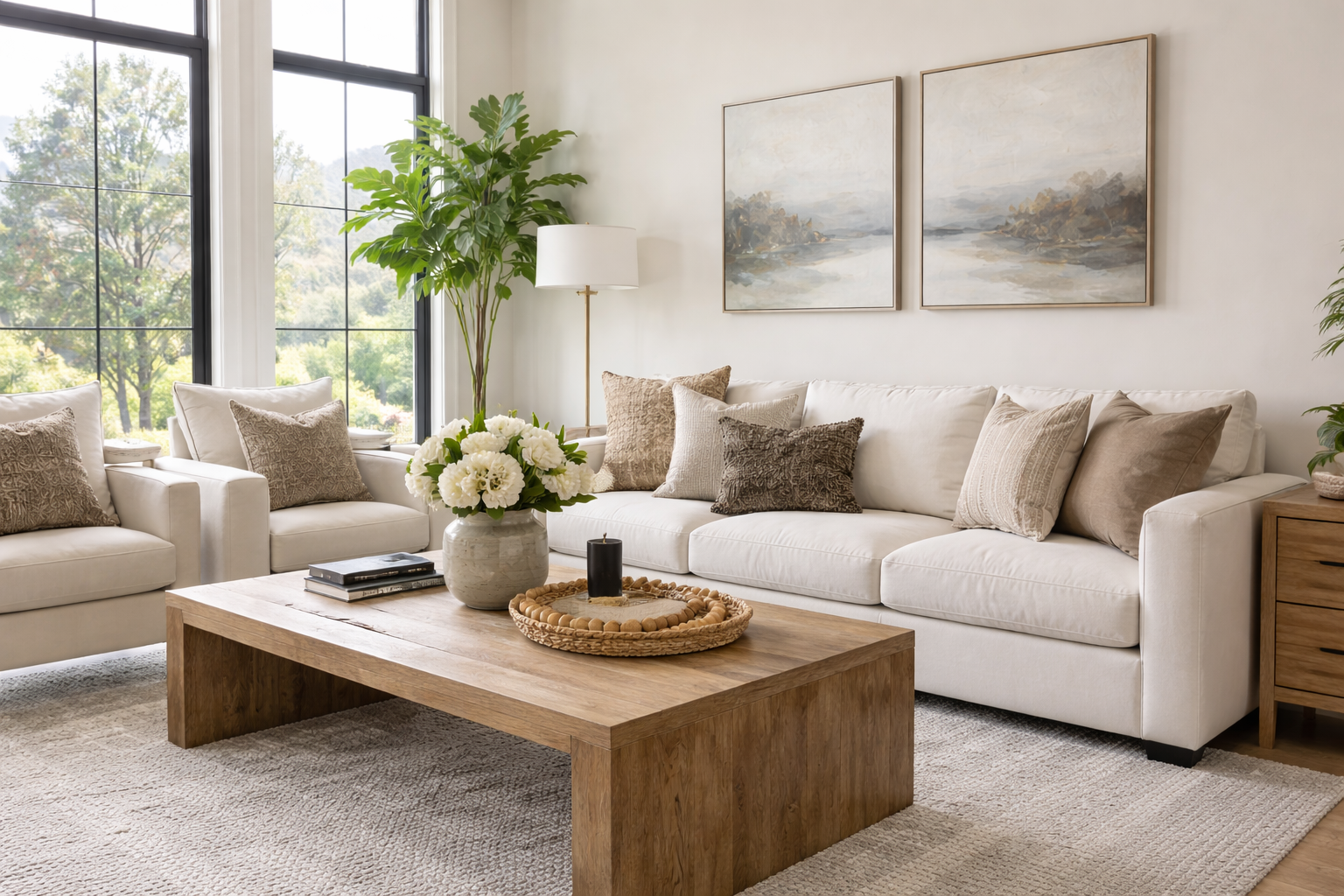 We strategically enhance your existing furnishings with carefully selected wall art, accent décor, pillows, throws, greenery, and styled vignettes to create warmth, balance, and visual flow throughout the home.